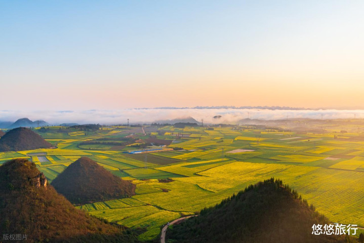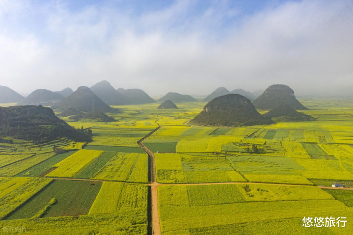2月下旬-3月中旬的罗平,藏着一幅动起来的春日画卷。80万亩金色油菜花海,组成寰宇最大的当然天成花圃。喀斯特峰林如笋般点缀在金黄花海中。