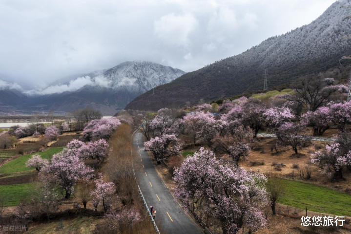 3月的林芝是粉色的汗漫寰宇,漫天遍地的桃花与雪山逸趣横生。嘎拉桃花村,桃花节的主会场之一,漫天遍地的桃花环绕着藏式村庄。