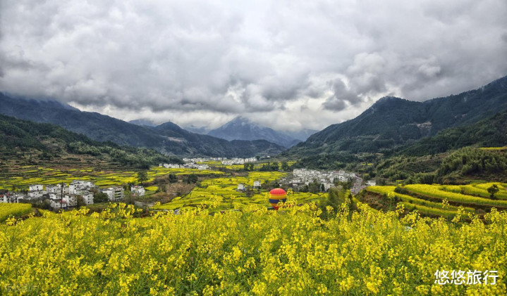 江岭的层层梯田上,黄澄澄的油菜花鼎力绽开,与白墙黑瓦的徽派建造互相衬托,应酬一拍齐是明信片。篁岭特有的地势,粉红的桃花、结拜的梨花点缀在黄灿灿的油菜花田中,组成一幅乡村原野画卷。