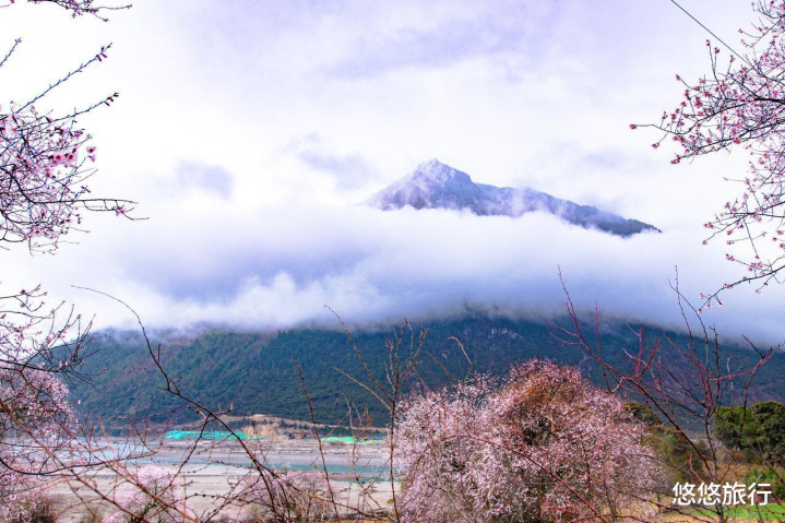 波密桃花沟绵延数公里的桃花林,雪山、冰川与桃花交相照映。索松村在南迦巴瓦峰眼下,桃花怒放的峡谷中,如果幸运,能看见南迦巴瓦的日照金山。
