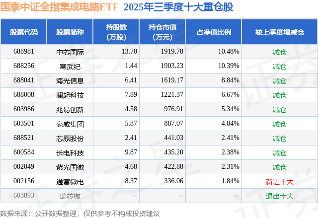 本站音讯,日前国泰中证全指集成电路ETF基金公布三季报开云体育,2025年三季度最新限制1.83亿元,季度净值涨幅为50.44%。