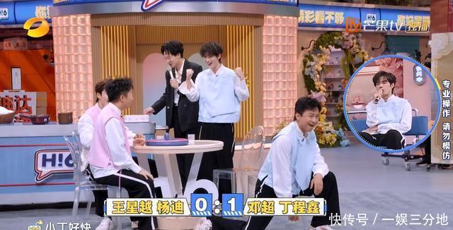这个表率下来,何炅都问邓超,是不是好久没干与综艺了,憋坏了。 莫得最搞笑,只消更搞笑。 玩321看这边的时代要多得瑟有多得瑟。 邓超跟丁程鑫一组,丁程鑫泼水时期,那是家喻户晓,丁程鑫泼水=扇水巴掌。